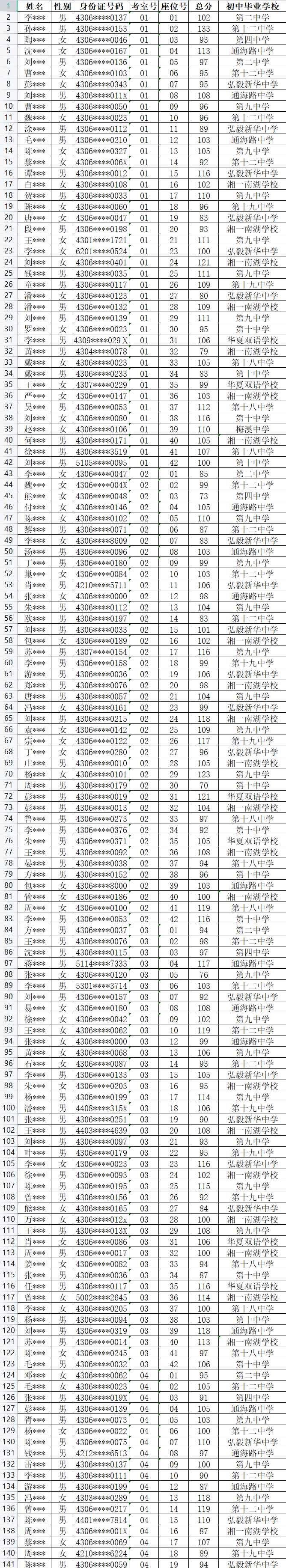 根据岳阳市教体局《2023年岳阳市市区普通高中招生工作方案》和《2023年岳阳市第十五中学拔尖创新人才培养基地班招生工作方案》,我校于6月24日对报考我校且符合条件的考生进行了现场测试,现将测试成绩公示如下: