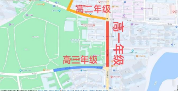 1. 高一年级:校门口道路及校门对面道路,允许靠道路停放一排。