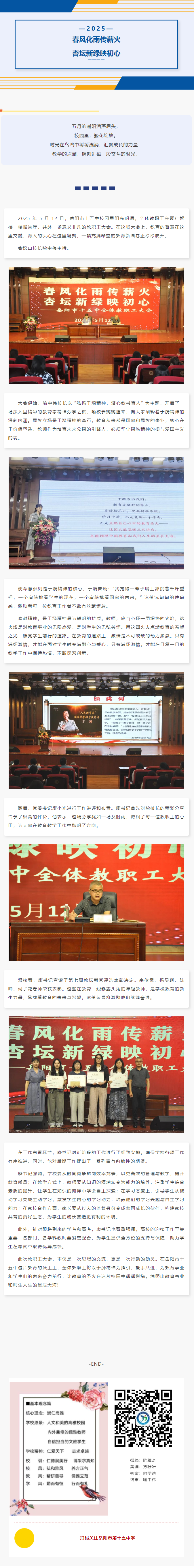 春风化雨传薪火,杏坛新绿映初心——岳阳市十五中全体教职工大会